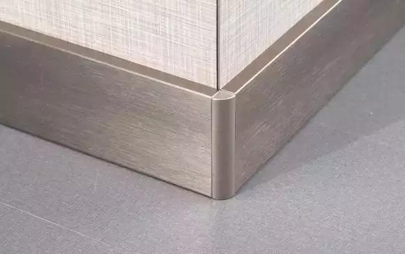 有不銹鋼和鋁合金兩種。早期以金屬光澤居多,多用于辦公室或工業(yè)風;現(xiàn)在很多鋁合金踢腳線有了更多的變化,比如木紋、拉絲等,視覺效果也柔和許多,更適合一般家庭使用。因其材質(zhì),轉(zhuǎn)角的處理也會更好。造價相比石材,也較為便宜。