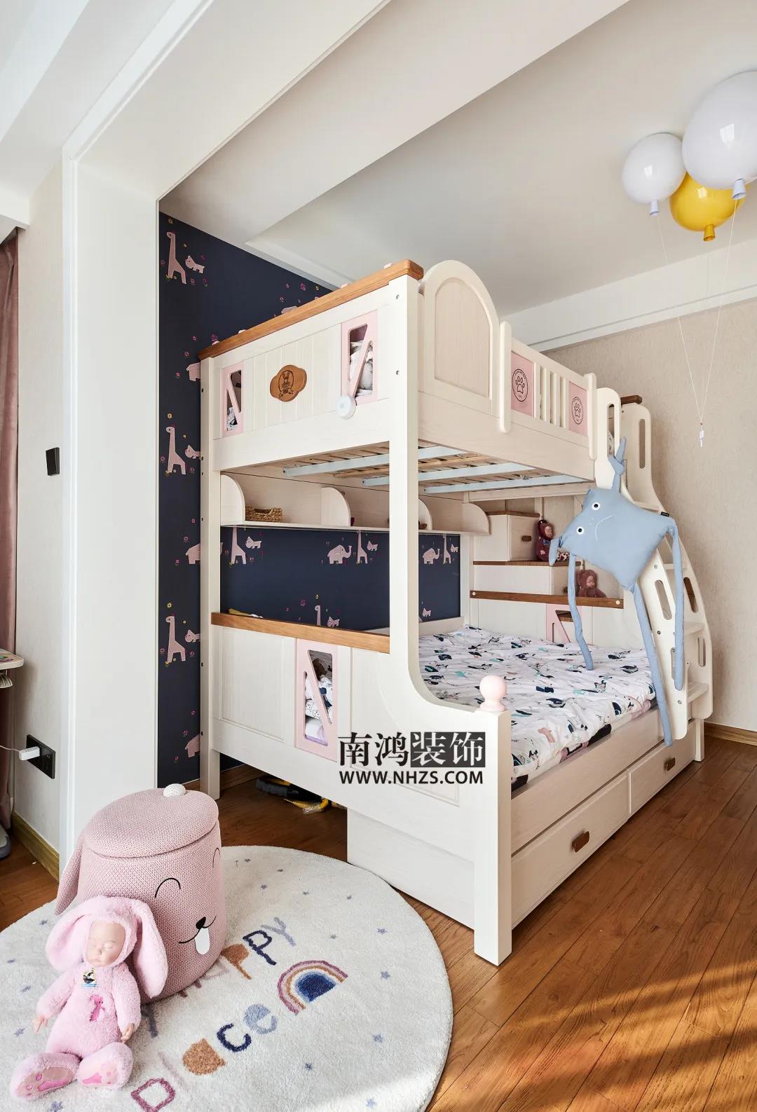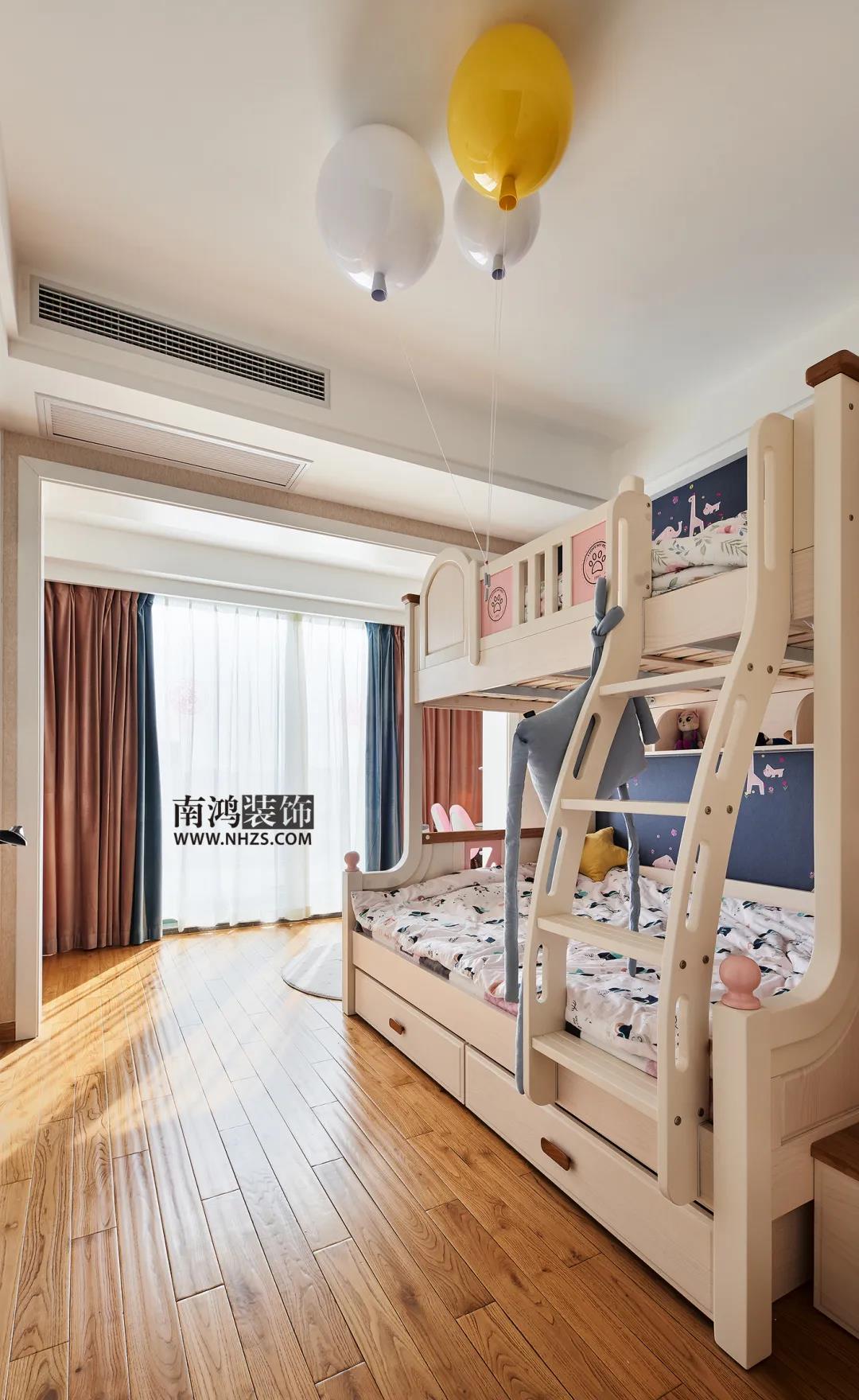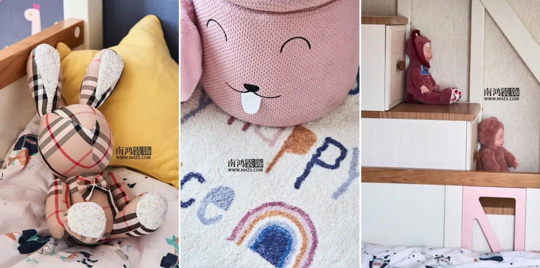 戶 型 圖 設計說明: 更改了次衛門的方向,將進衛生間門口的過道改成了儲藏間,增加儲物空間; 次臥向兒童房借了衣柜的空間,兒童房又包進陽臺,從而保證兩個區域都能擁有足夠的生活面積。 客廳,地面通鋪大理石瓷磚,頂面線條極簡,一側背景墻選用大面積KD板包覆,呈現簡約基調。 客廳與餐廳呈開放式布局,確保空間采光與通透性。家具間不同材質的碰撞,搭配各色靠枕與菱形式樣地毯,打造出輕盈時尚的生活環境。 客廳望向玄關視角。入戶口設計了功能齊全的玄關柜,滿足業主日常需求。電視背景墻一側,懸空式地臺取代了傳統電視柜,整體效果看起來更為大氣。 餐廳,黑色餐桌線條利落,造型簡約,絨面的磚紅色長凳在金色元素的點綴下顯現出小輕奢的格調。 陽臺與餐廳相鄰,做了一個到頂柜,保留一定儲物空間。儲物柜旁還設計了黑板墻,供孩子們盡情發揮自己天馬行空的想象力。 透過各種充滿童趣的小物件就能看到這個家的有愛氛圍~ 廚房呈L型布局,木質櫥柜搭配黑色拉手和水磨石臺面,簡潔清爽,高低臺的設計更貼合人們日常的下廚習慣。 主臥,墨綠色背景墻搭配深黑色矮背床,深沉的色系更容易營造靜謐的睡眠氛圍。 兒童房,選用柔和色系搭配各種玩偶元素來裝扮這個童心空間,用上下鋪實現居住功能,樓梯則作為隱蔽的抽屜解決一些儲物問題。 | 地址:紅街公寓 | 面積:137㎡ | 風格:現代 | 設計施工:浙江南鴻裝飾