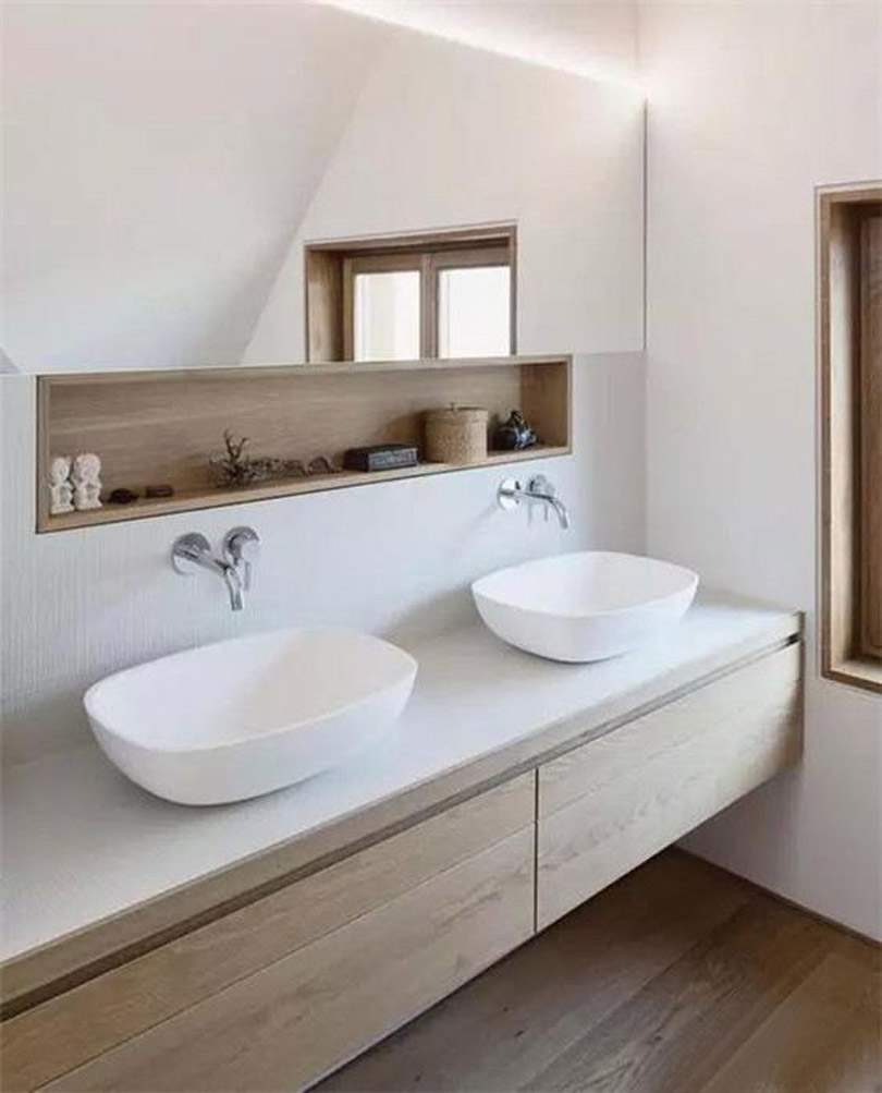 大部分戶型圖中衛(wèi)生間都不是方方正正的,會有各種各樣的不規(guī)則形狀。那么在裝修的時候如何巧妙的利用這些空間就很有必要啦!在這些不起眼的地方做出壁龕不僅增加了衛(wèi)生間的收納空間,還能使衛(wèi)生間更加美觀,格調(diào)滿滿。