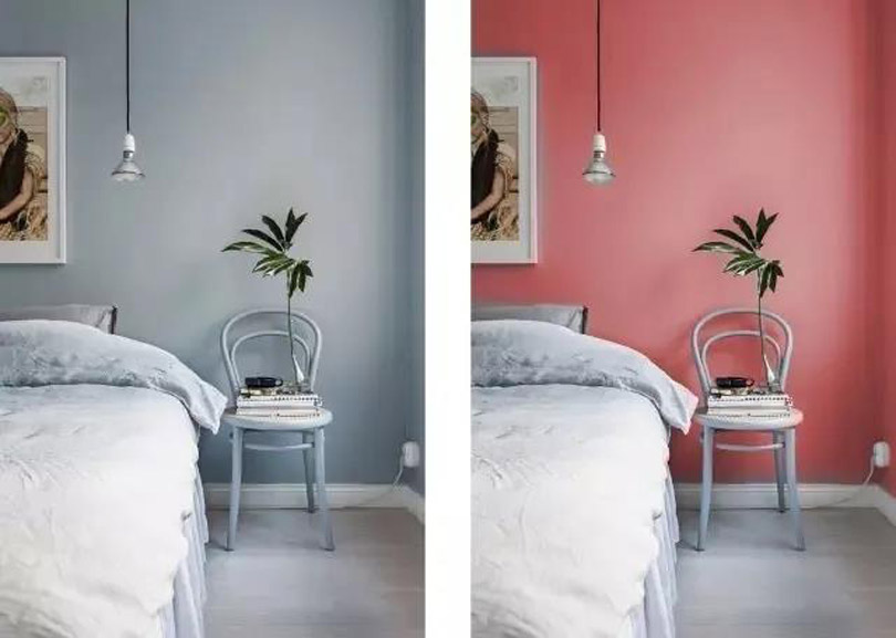 暖色會讓人覺得物體更接近你,視覺距離短,故又稱為之前進色,冷色則相反,屬于后退色,會使視覺距離變長。善用前進色和后退色,能讓我們自如地對戶型進行優(yōu)化。