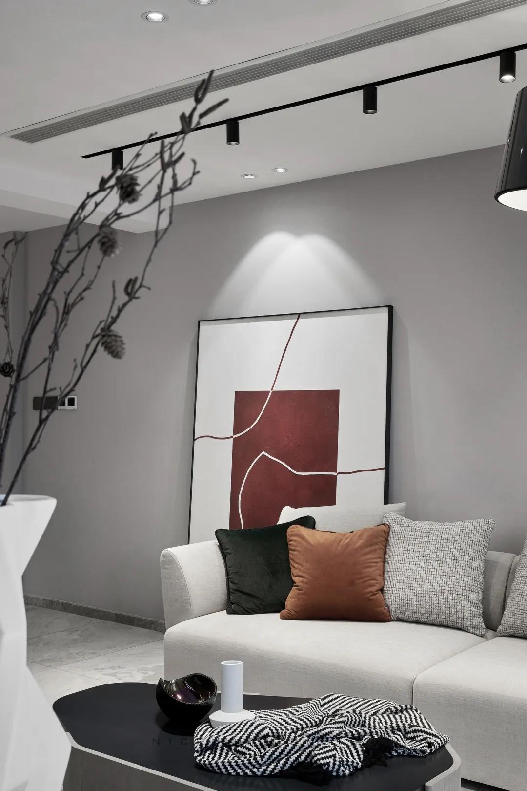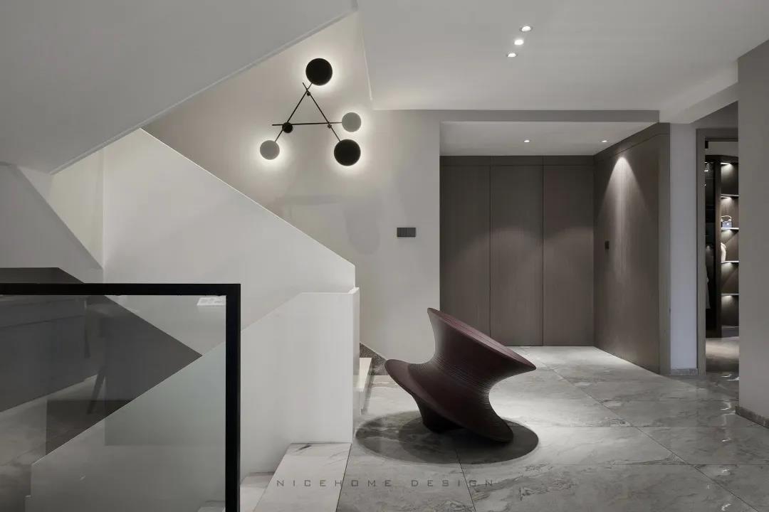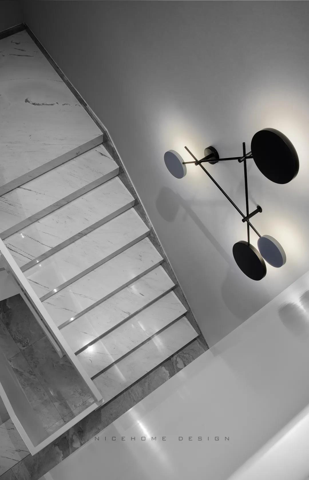 一層原結構樓梯位置不合理,處于入戶正對口,現移動至西側以規避缺陷。客廳主沙發后做一面凌空隔斷墻,增加視覺層次與進門后的儀式感。