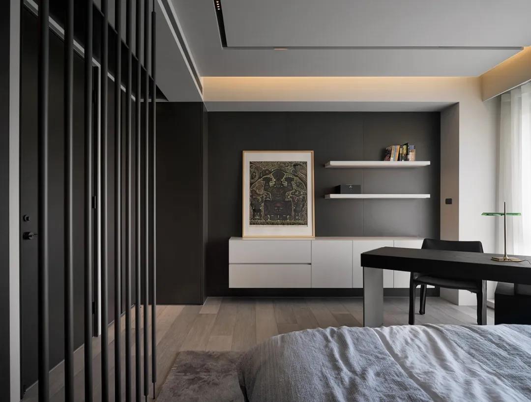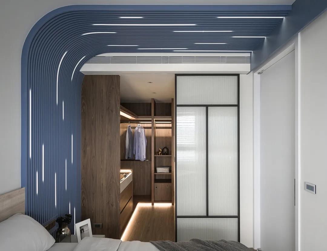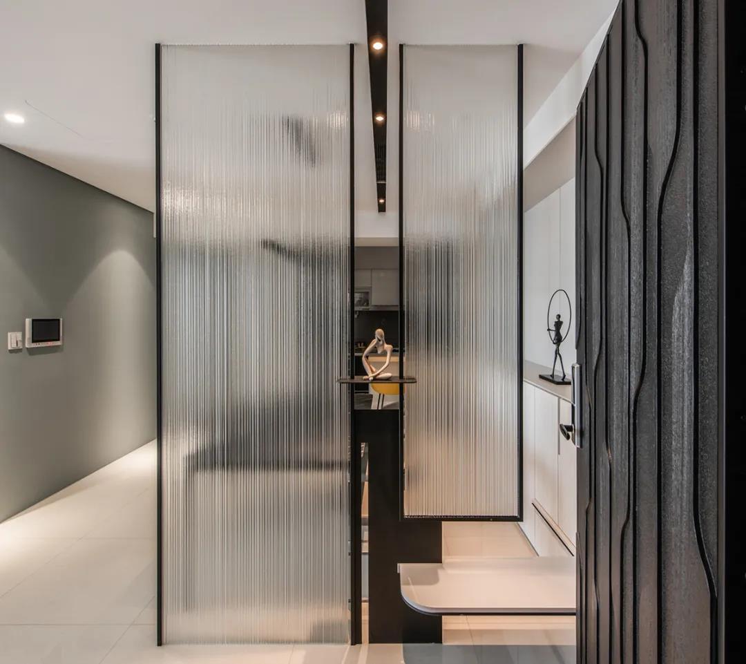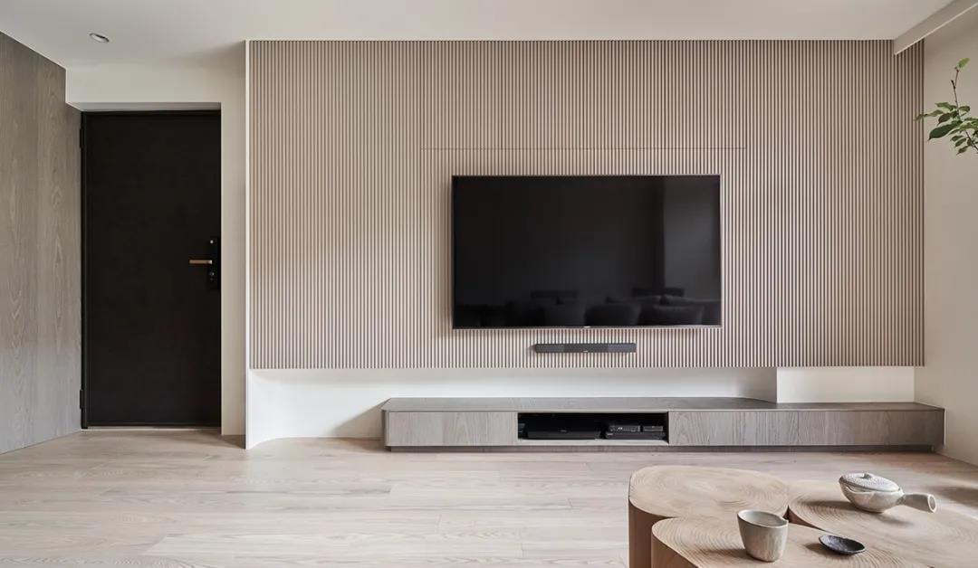 還有一種常見的拉伸層高方式,就是在墻面裝飾上使其呈現豎紋感。細長的豎紋,會自然而然給人一種層高被拉高的錯覺。