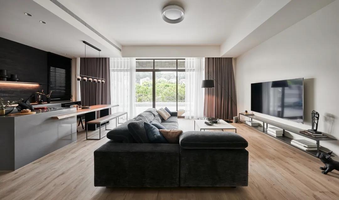 家具,特別是像沙發、床那種大件,盡量選擇長扁型,這樣會讓墻面露出的面積更大一些,豎向看離天花板也會更遠一些。