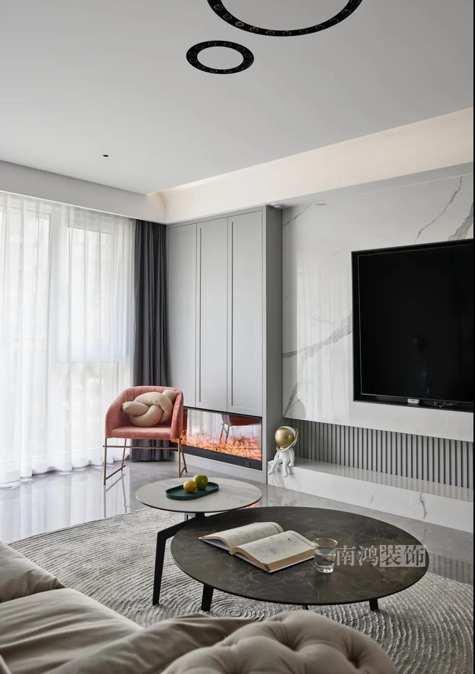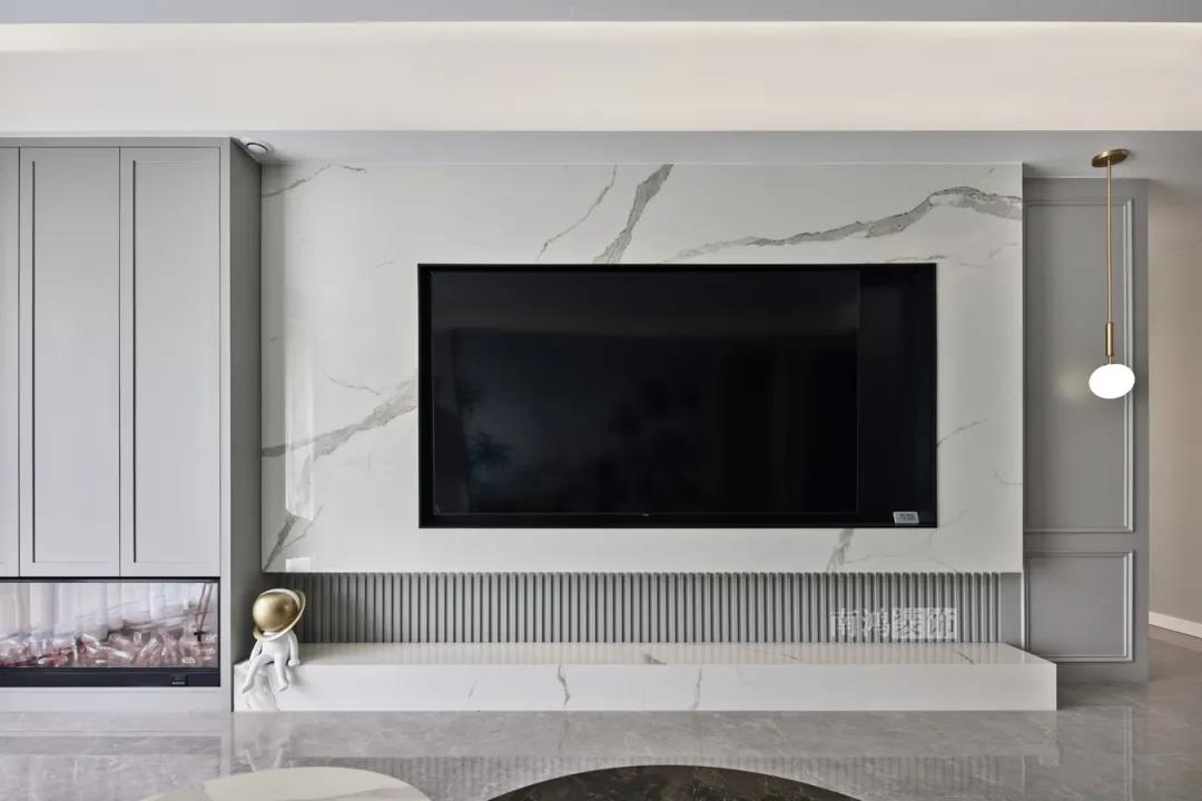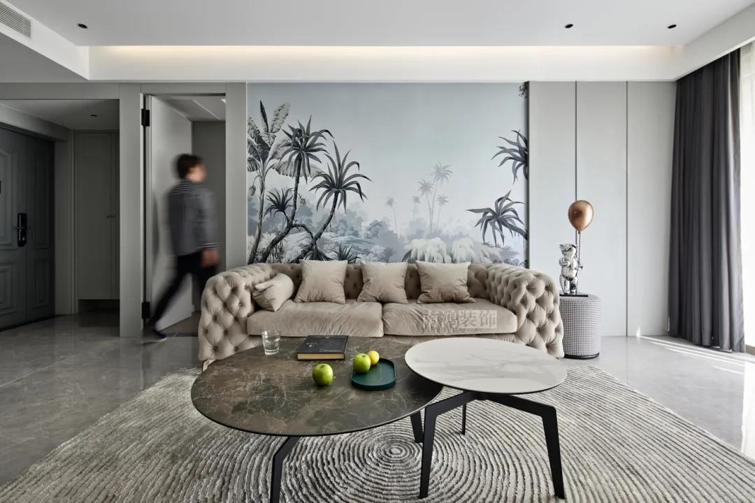 客廳以高級灰為主基調,低飽和度的特性使得它具備很強的包容性。