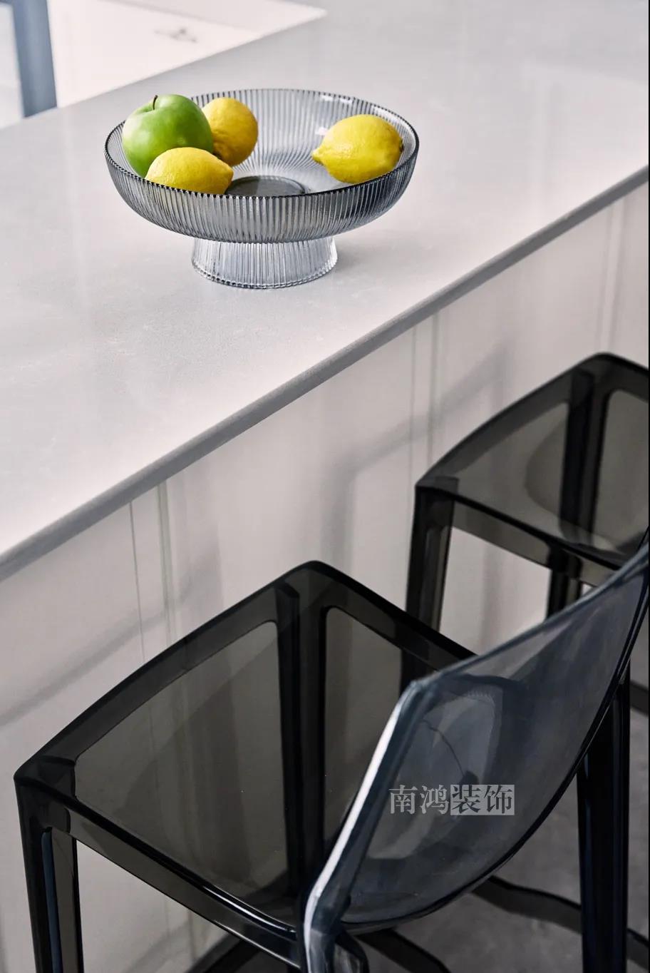 餐廳處還添加入西廚的功能,讓廚房實現多功能化,同時弱化了原區域的狹長感。