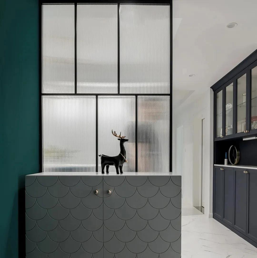 豎條紋壓花玻璃的“豎”,會比其他幾何線條更容易帶來“高”的心理暗示,且它作為隔斷或者移門時,會使空間看起來敞亮,實現各空間的和平相處。