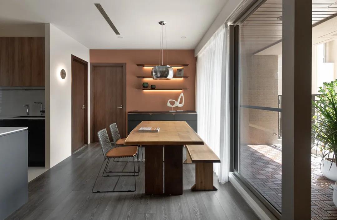 將吧臺與餐桌結(jié)合的設(shè)計(jì)相當(dāng)美觀,無論是就餐還是品酒,都讓生活充滿了情調(diào),適合單身或是兩個(gè)人住的家庭。