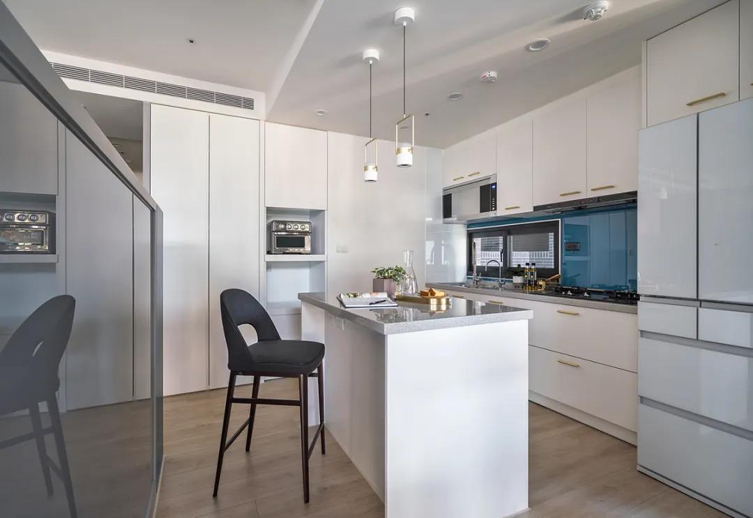 比如,開放式餐廚空間,讓餐廚兩塊區(qū)域的動(dòng)線共享,實(shí)現(xiàn)“1+1>2”的效果,小戶型也能擁有一個(gè)比較寬松舒適的做飯、就餐空間。
