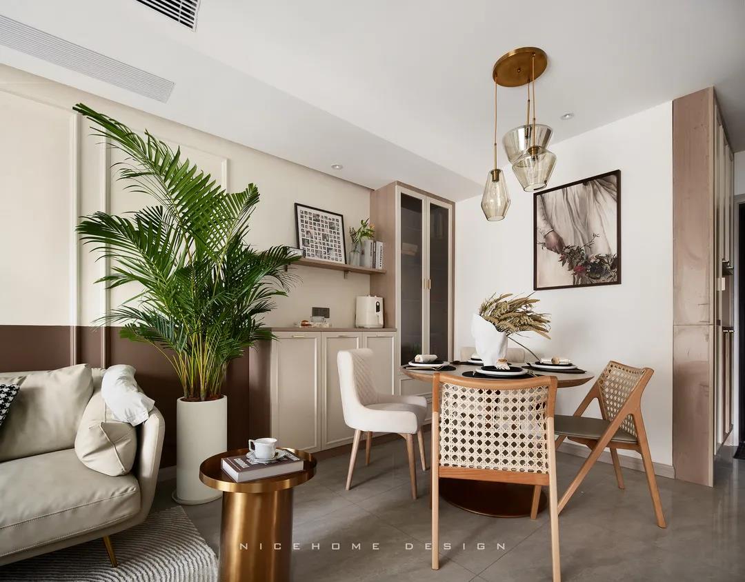 同理,客廳與餐廳都比較緊湊的話,不如就將二者做成一體式設(shè)計(jì),功能放在同一個(gè)空間里,視野會因此變得開闊許多。