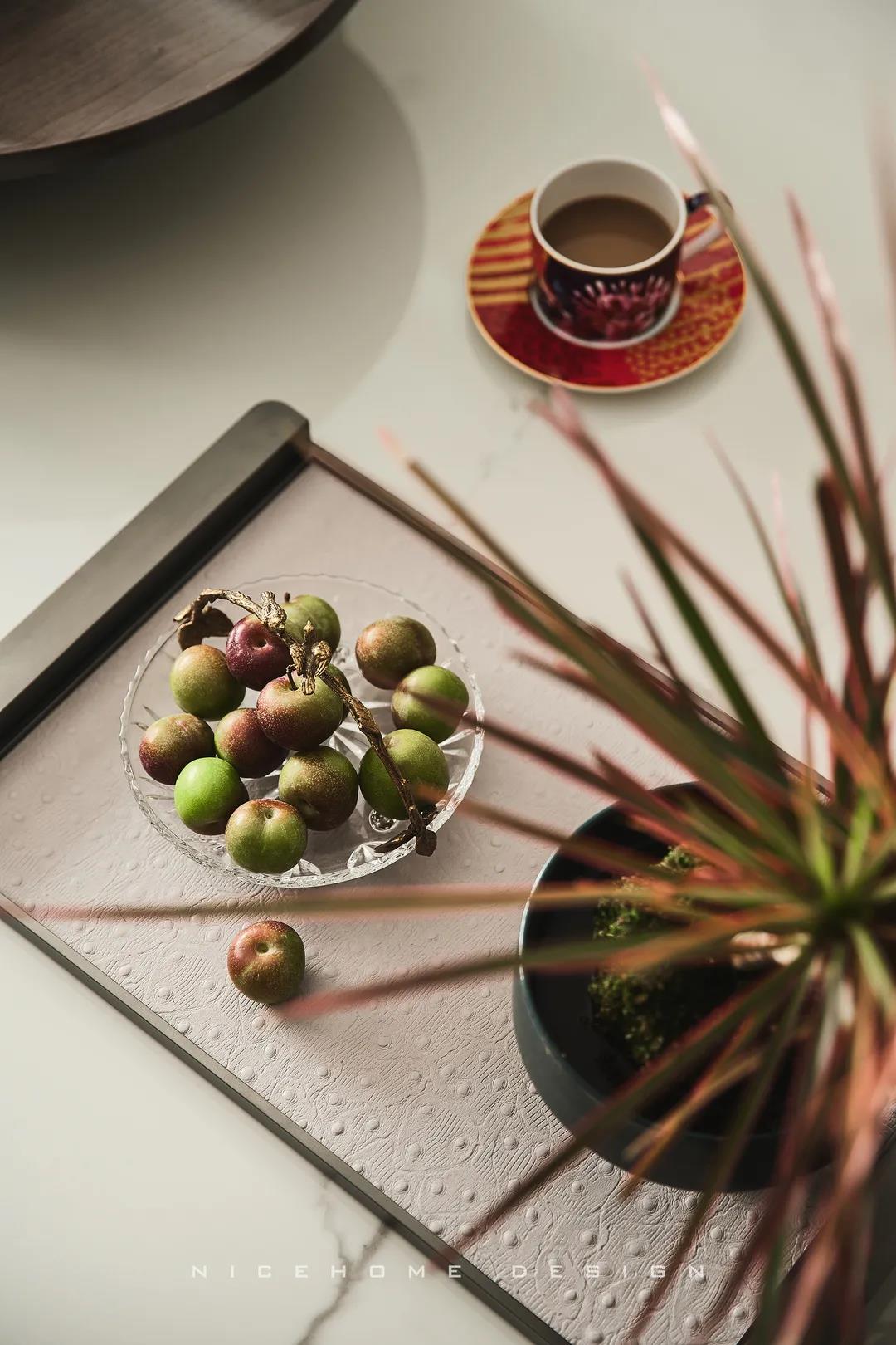 陽(yáng)臺(tái)處設(shè)計(jì)品茶區(qū),清冽的茶香伴著溫煦日光,縈繞此間的只有言笑晏晏的自在感受...