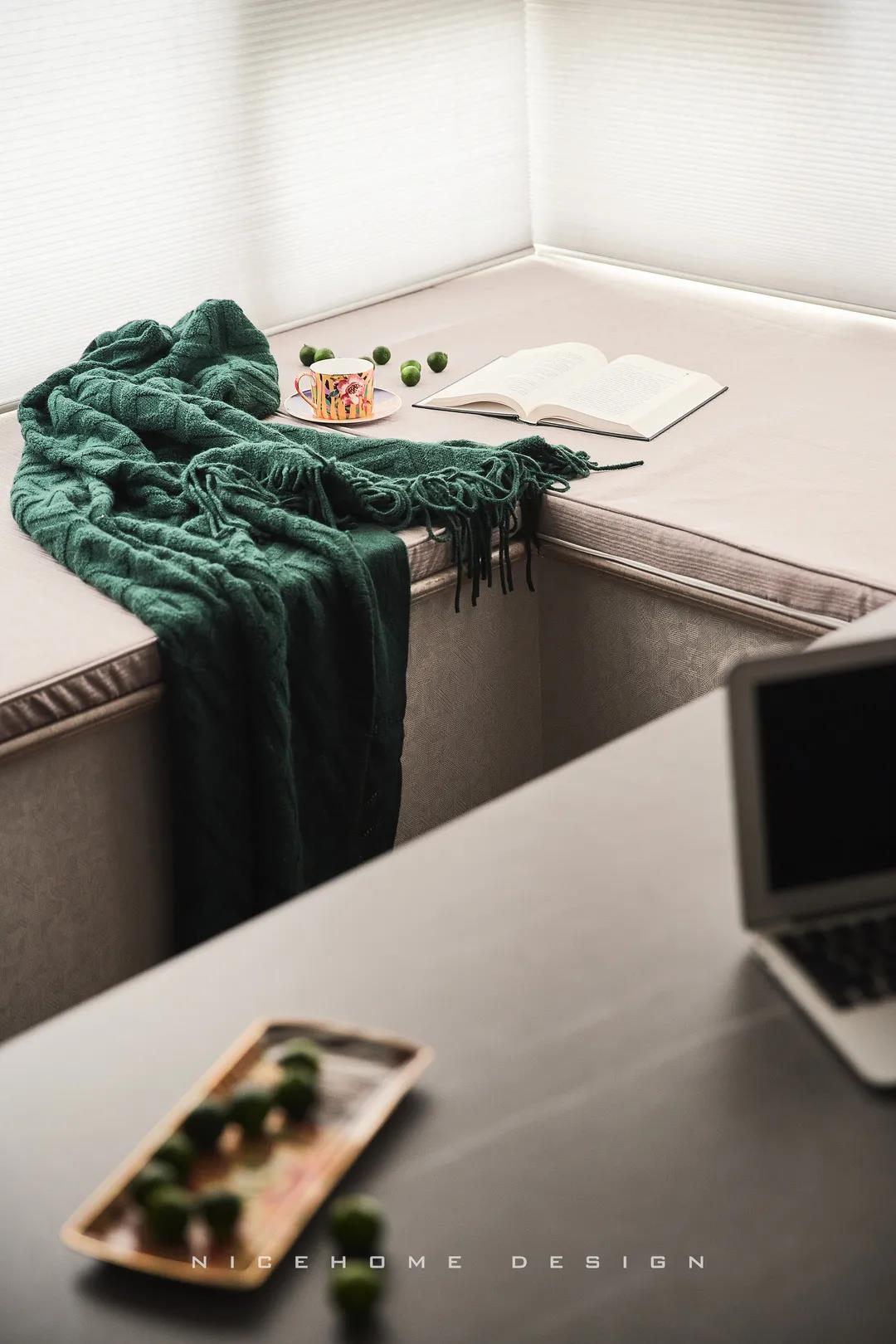 書房,沒有任何多余的裝飾,書桌椅+大書柜的配置便已足夠日常的辦公、學(xué)習(xí)使用,轉(zhuǎn)角飄窗也被妥善利用起來(lái),作為閑適一角。