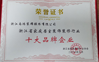 喜報!南鴻裝飾獲省裝飾行業十大品牌稱號!