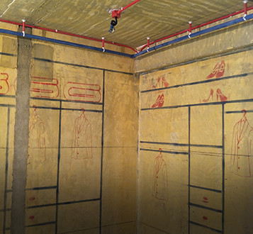 隱蔽工程驗收合格后,泥工進場補線槽局部修補,衛生間墻面防潮處理